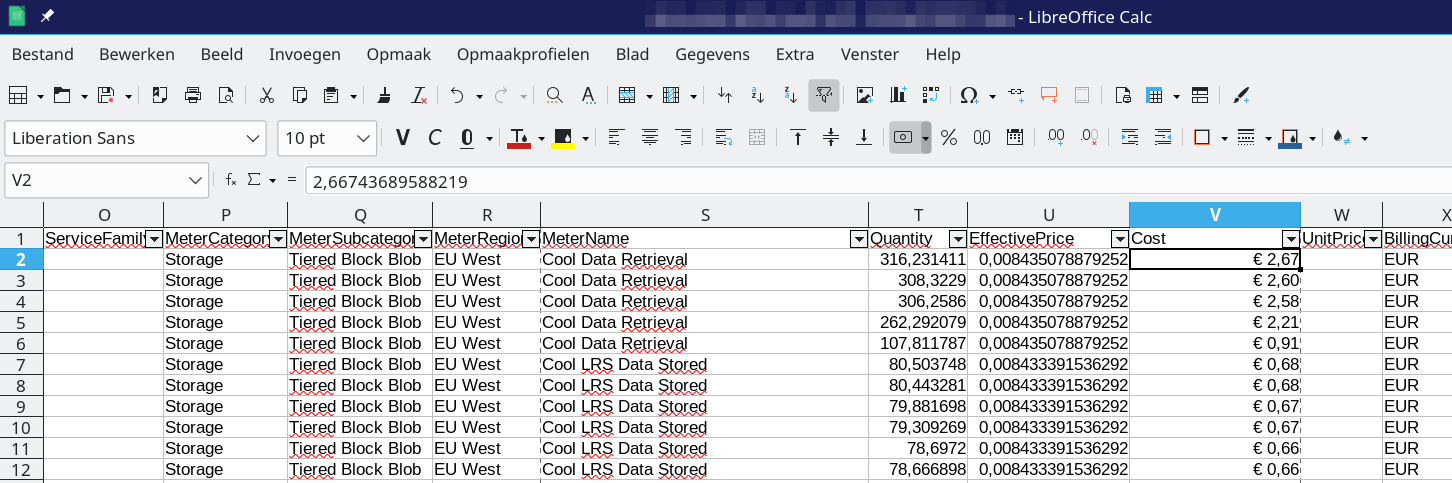 Looking into the detailed usage CSV for last month and this month, I can see exactly where this increase comes from. Meter Cool Data Retrieval last month was at max EUR 0.015691, this month I have 5 rows with a price around EUR 2.50, which totals to EUR 10.97. Last month's total Cool Data Retrieval was EUR 0.10, this month it's EUR 11.06. The other meters did not increase significantly.