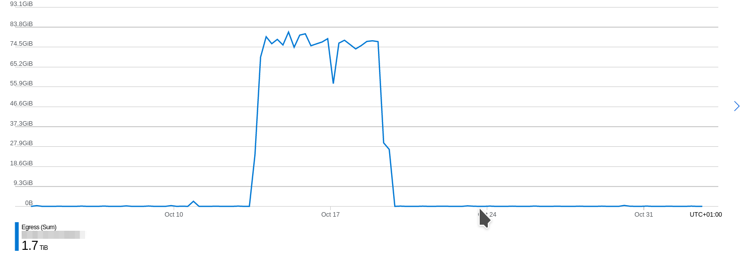 The actual restore amount traffic in Azure was 1.7 TB, which matches the current used traffic.
